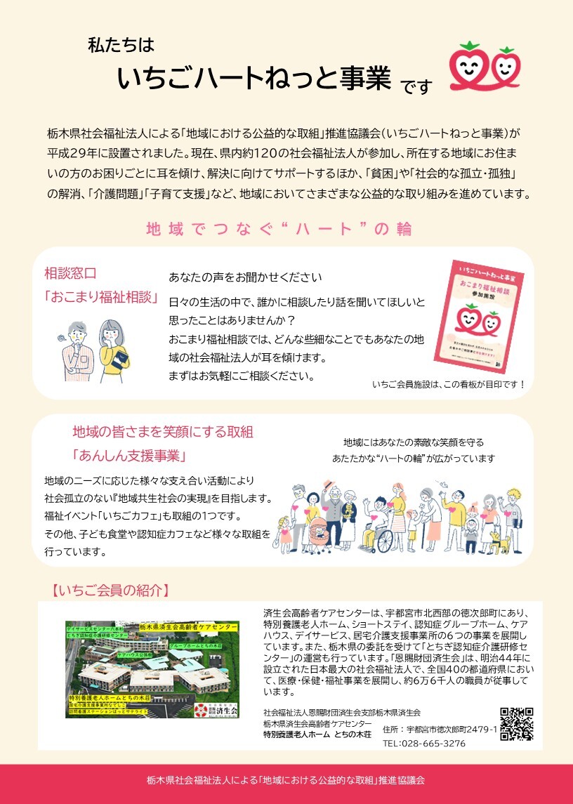今回は、栃木県済生会高齢者センター 特別養護老人ホームとちの木荘さんが開催します!